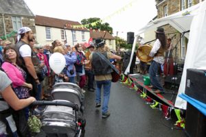 Before the day, the people of Pilton were invited to Decorate their Wellies in their gardens. They responded enthusiastically with 25 displaying wellies decorated in imaginative ways. You can see an album of the results by clicking on the image. The music side of Green Man Day has evolved over the years and again we are lucky to have some amazing acts to entertain the crowds. There was music on three stages in Pilton Street and the Open Mic Stage in the grounds of Pilton House next to the very popular Green Man Beer Tent. As usual, this year’s acts came from the